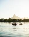 Kayaking Sunrise Tour : Cette sortie en kayak débute à l’aube. Nous avançons sur la rivière au lever du soleil, lorsque l’eau reflète les teintes dorées du matin. Le paysage est marqué par les silhouettes du Rempart et des Trois Mamelles. L’excursion s’achève dans la baie de Tamarin.